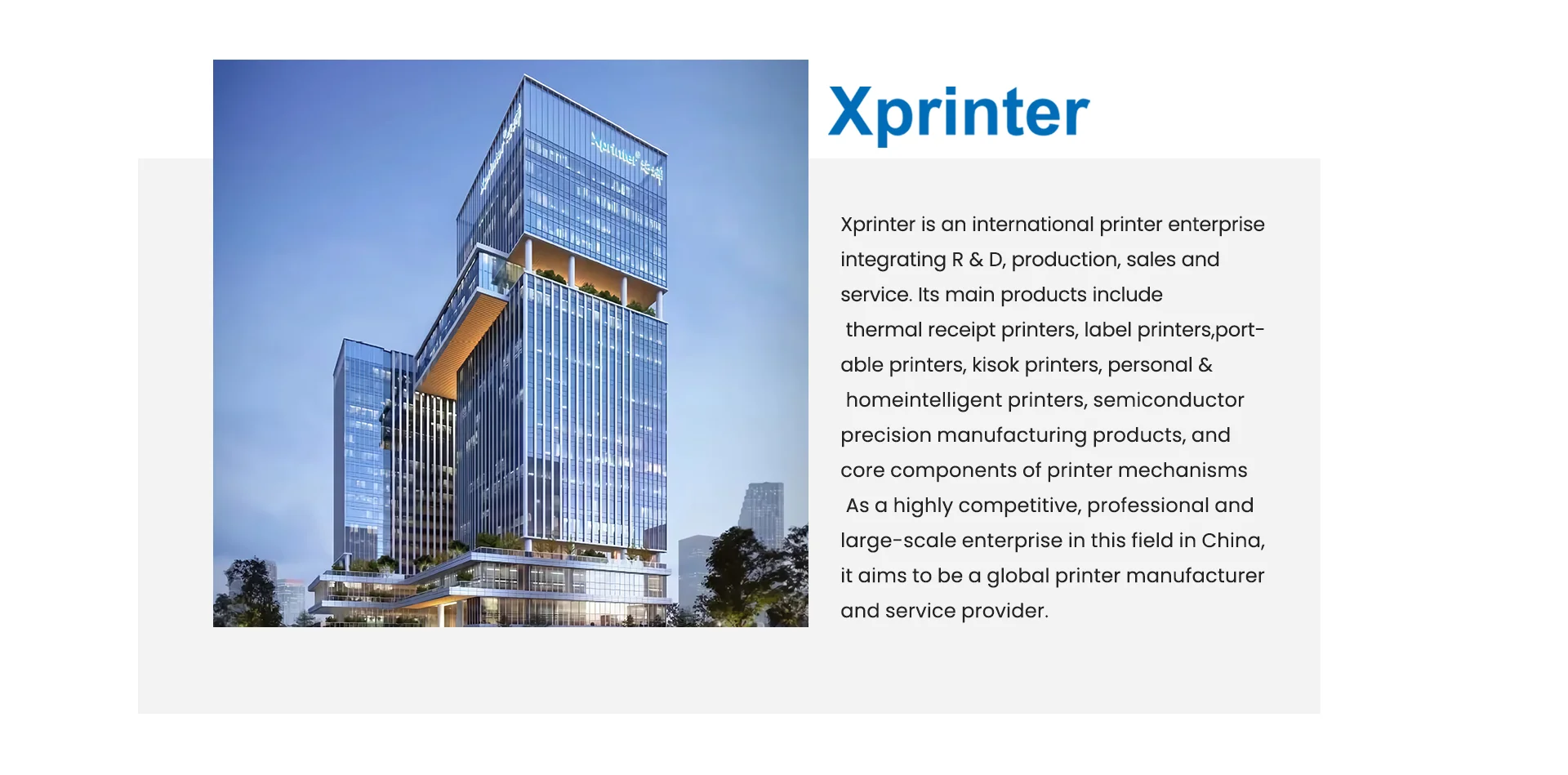 Produk utama: Printer struk Thermal, Printer Thermal Label, Printer Mobile, Printer Transfer Thermal, Printer Panel